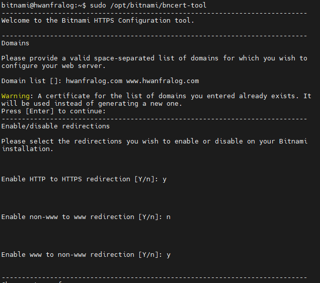 Bitnami 환경에서는 비트나미에서 제공하는 bncert-tool을 사용하는 것이 가장 빠르고 확실하다고 함